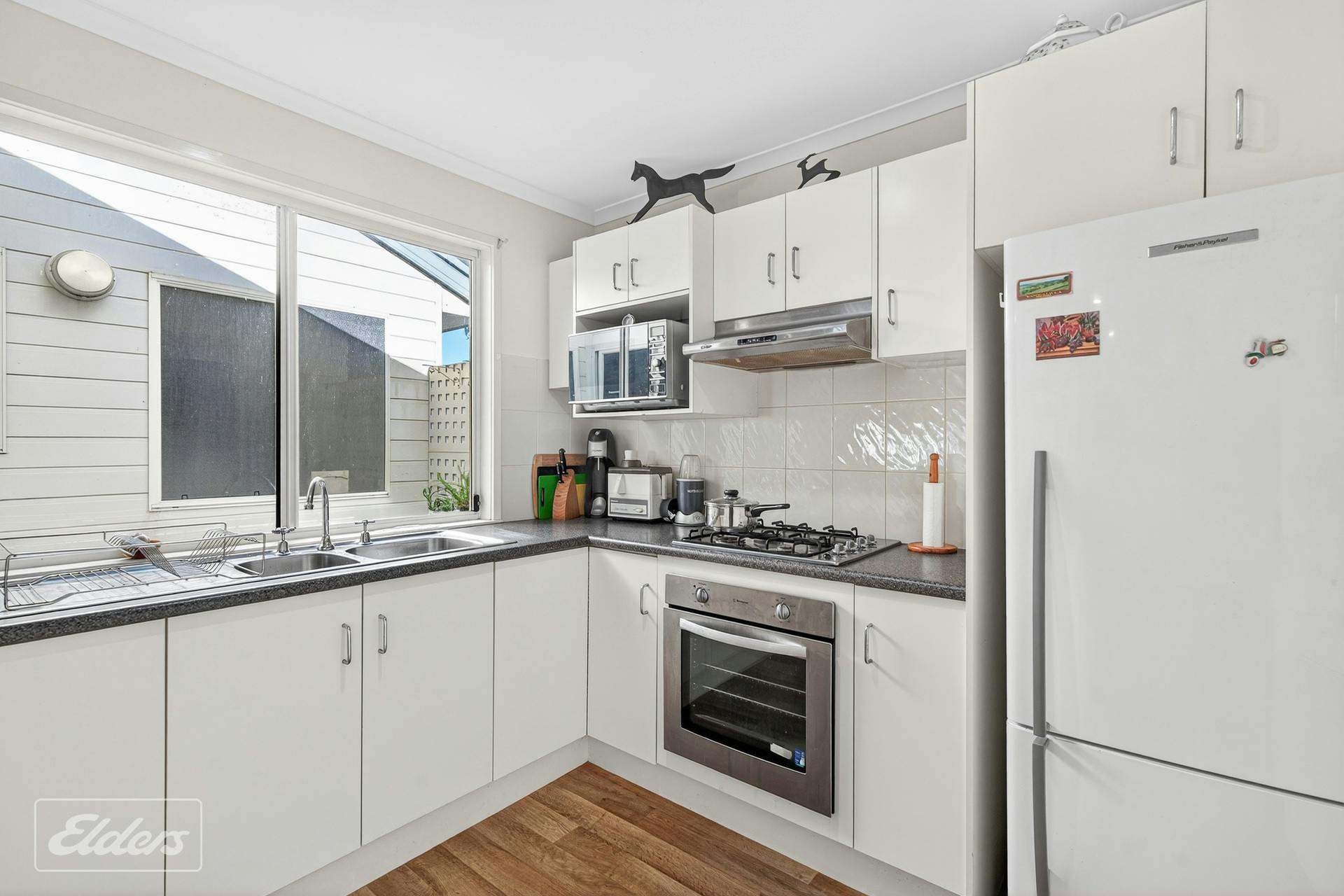 The villa itself features three bedrooms, each with built-in robes, a modern kitchen - looking to a light filled atrium which is connected to the living and dining areas. A large undercover deck with good quality breeze proof blinds provides for great outdoor living. This space looks over the fully fenced side yard with a lovely lawn and simple garden, plus a garden shed and paved paths.